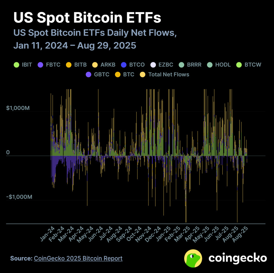 As the largest spot Bitcoin ETF in terms of AUM, BlackRock’s IBIT rapidly established its dominance by growing its market share from 0.04% in January 2024 to 52.6% as of end-August 2025. The product’s share of trading volume has also risen from 22.1% to 75.4% in the same period.